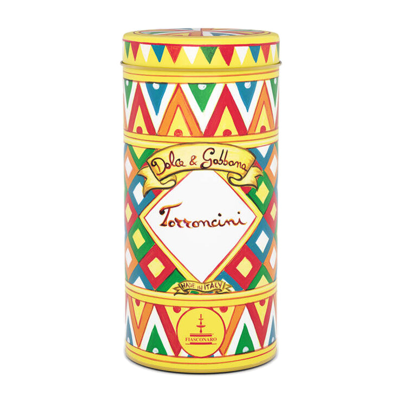 Morbidi pezzi di torrone siciliano ricoperti di cioccolato. Incartati singolarmente e nei gusti: cioccolato al latte, limone, arancia e cioccolato fondente. Confezionati in un elegante barattolo disegnato da Dolce & Gabbana.
