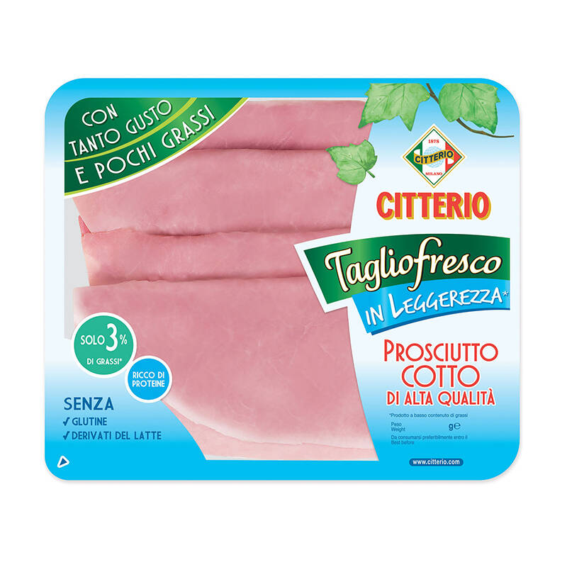 Con solo il 3% di grassi, il Prosciutto cotto Leggerezza è il prodotto perfetto per chi non vuole rinunciare al gusto e alla linea.