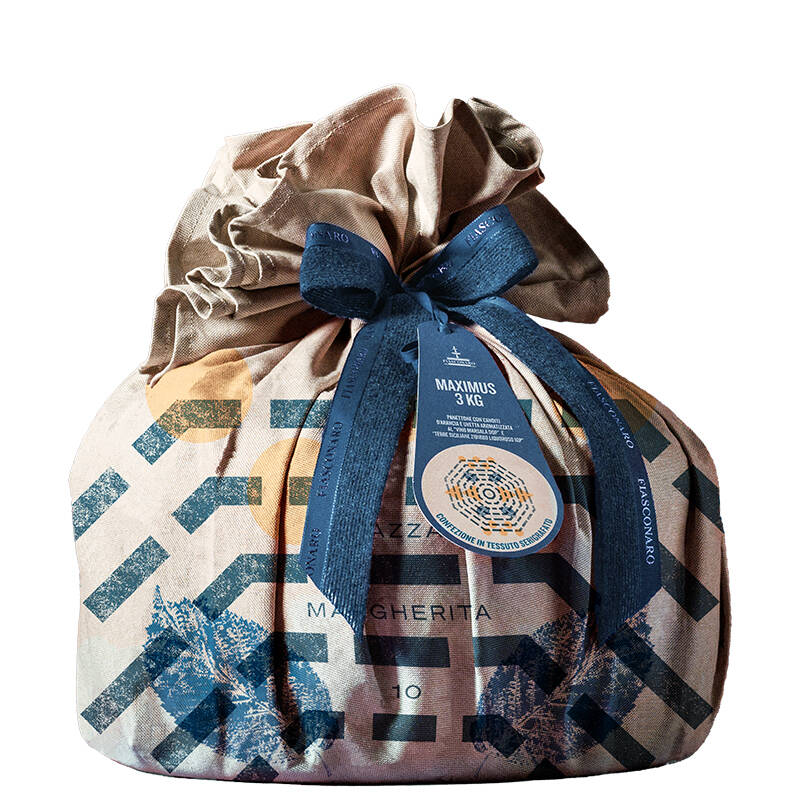 Panettone con cubetti di arancia fresca di Sicilia e uva sultanina, confezionato a mano.
