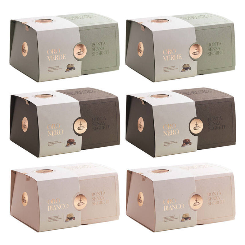 Mix aus den folgenden Panettone: 2 Oro Verde, 2 Oro Nero, 2 Oro Bianco