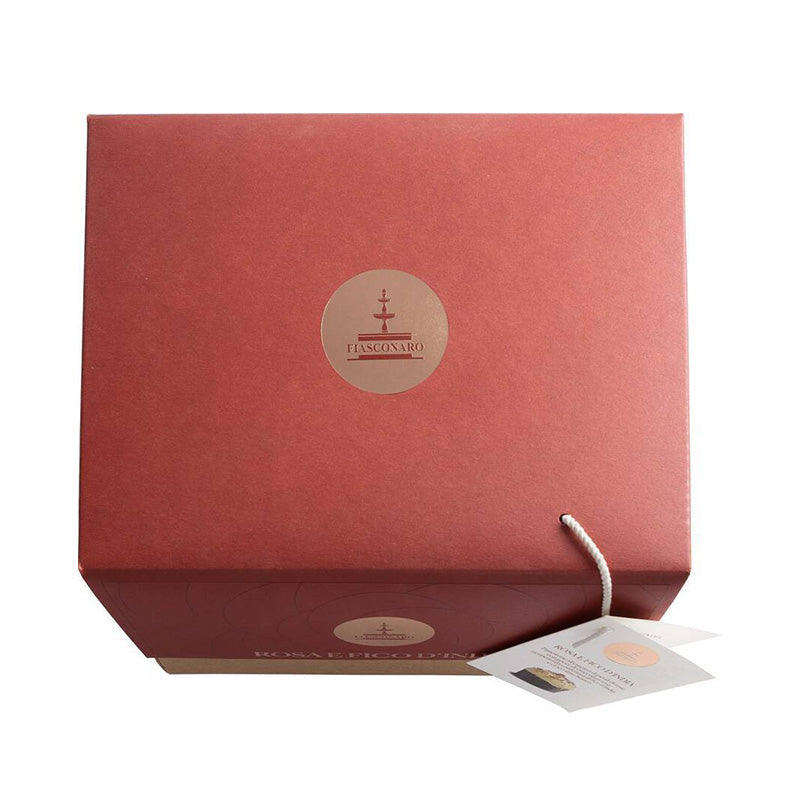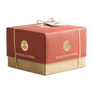 Panettone mit Rosenblütenessenz und rosa Schokoladenstückchen, bedeckt mit Kaktusfeigen-Konfitüre, weisser Schokolade und Schokoladenkrokants.