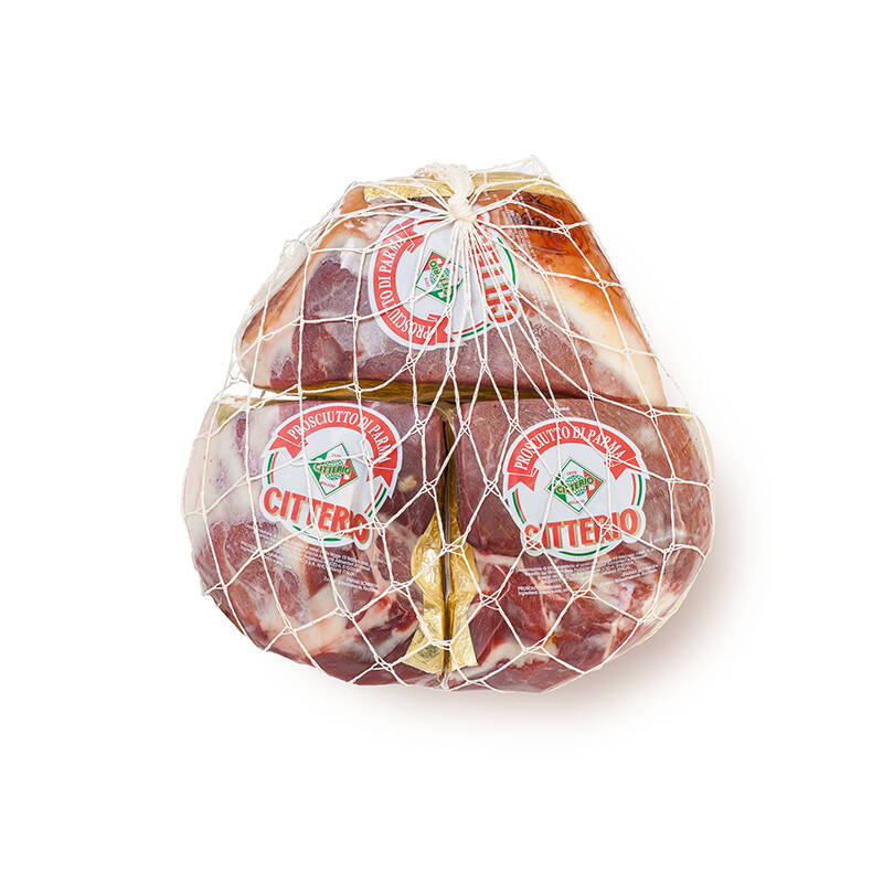 Avec sa tradition transmise depuis plus de 1 000 ans, le Prosciutto di Parma DOP est un symbole de la charcuterie italienne. Uniquement cuisse de porc italienne et sel, ainsi qu'un grand soin et une grande passion sont les seuls ingrédients de sa production. Il est ensuite affiné naturellement pendant au moins 13 mois à Poggio Sant'Ilario, où le microclimat est idéal, ce qui confère au jambon de Parme sa douceur inimitable. Découpé en 4 parties, sous vide.