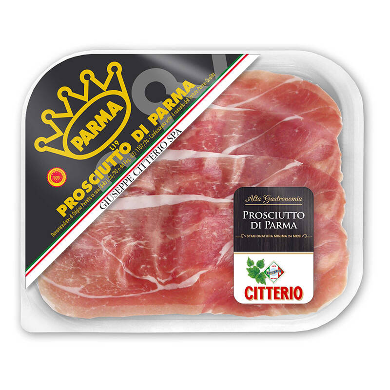 Mit seiner mehr als 1000 Jahre alten Tradition ist der Prosciutto di Parma DOP ein Symbol für die italienischen Wurstwaren. Er wird mindestens 24 Monate lang auf natürliche Weise in Poggio Sant'Ilario gereift, wo das Mikroklima ideal ist und dem Parmaschinken seine unverwechselbare Süsse verleiht. Bereits in viele Scheiben aufgeschnitten.
