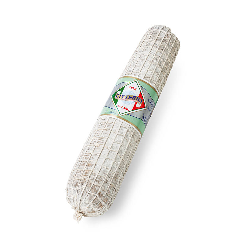 1005Der Mailänder Salami Crespone nach dem Originalrezept von Casa Citterio. Durch die langsame und natürliche Reifung von 6 Monaten erhält man einen rubinroten Salami mit einem gut definierten Fettkorn, feinem Geschmack und fester Textur.