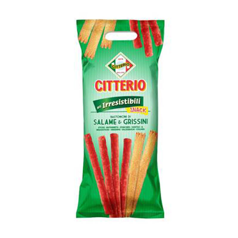 Les délicieux sticks de salami accompagnés de grissini croustillants sont le snack idéal entre deux repas.