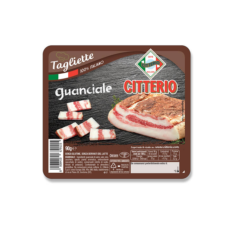 Una pancetta accuratamente selezionata e lavorata costituisce la Pancetta Arrotolata di Citterio. Un prodotto dolce e gustoso che viene già tagliato in tante fette sottili nella pratica vaschetta.