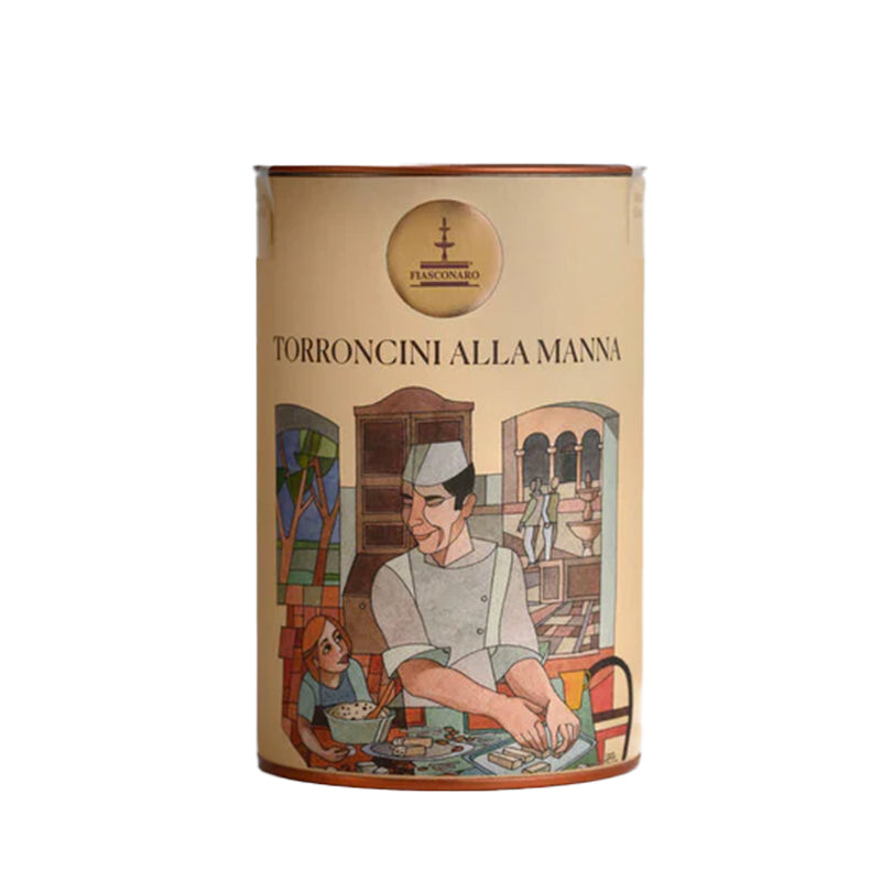 Morbidi pezzi di torrone siciliano con manna (resina dell'albero della manna) ricoperti di cioccolato bianco. I pezzi sono incartati singolarmente.