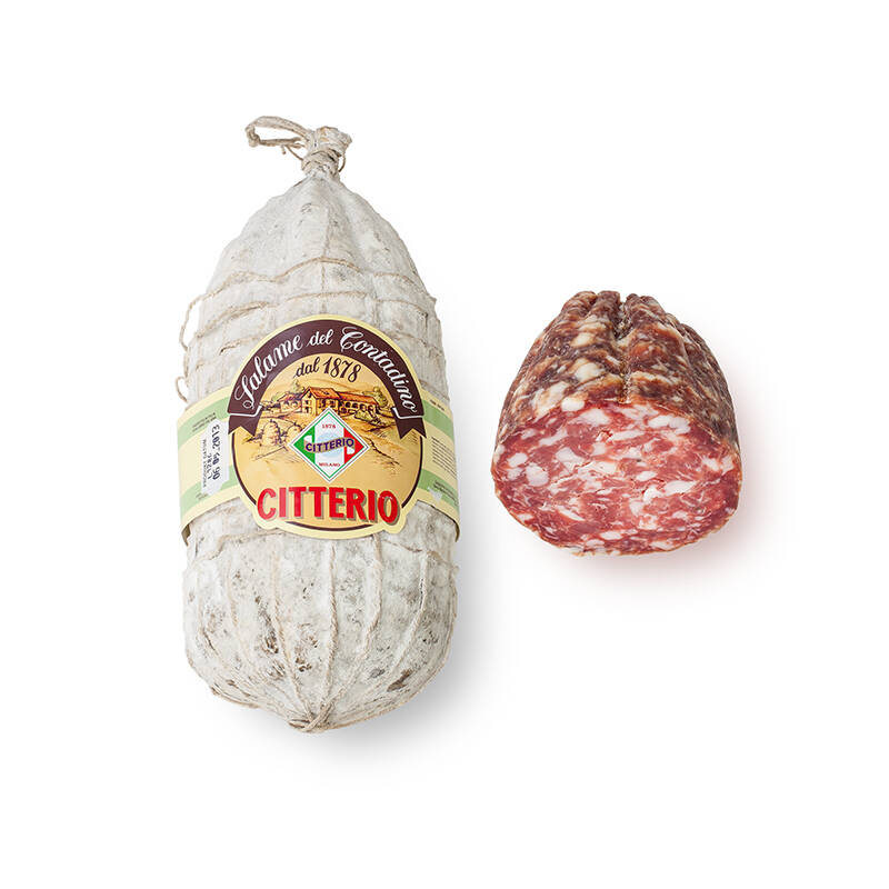 Ausgehend von bäuerlichen Traditionen hat Citterio ein neues Rezept entwickelt. Mit einer besonderen Verarbeitung, Würzung und einer natürlichen Reifezeit von mehr als 5 Monaten, zeichnen eine grosse Scheibe und ein kräftiger Geschmack den Salami Contadino aus. Handgebunden.